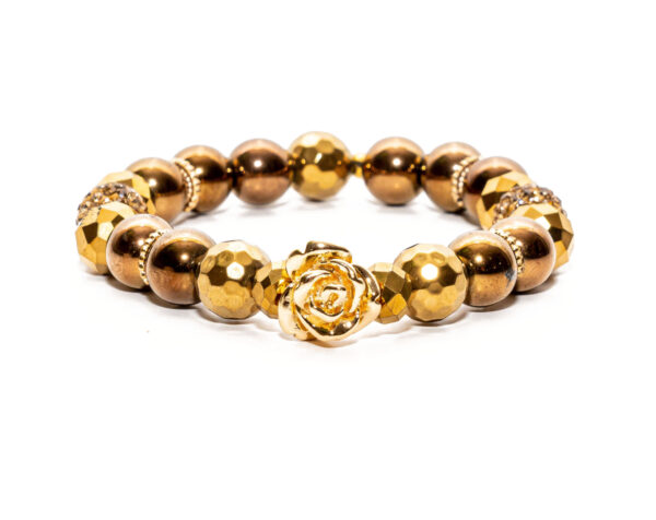 Our Rose collection focus is on the beautiful golden rose accent. It’s mixture of gold and bronze beads adds pizazz and is certainly a show stopper!