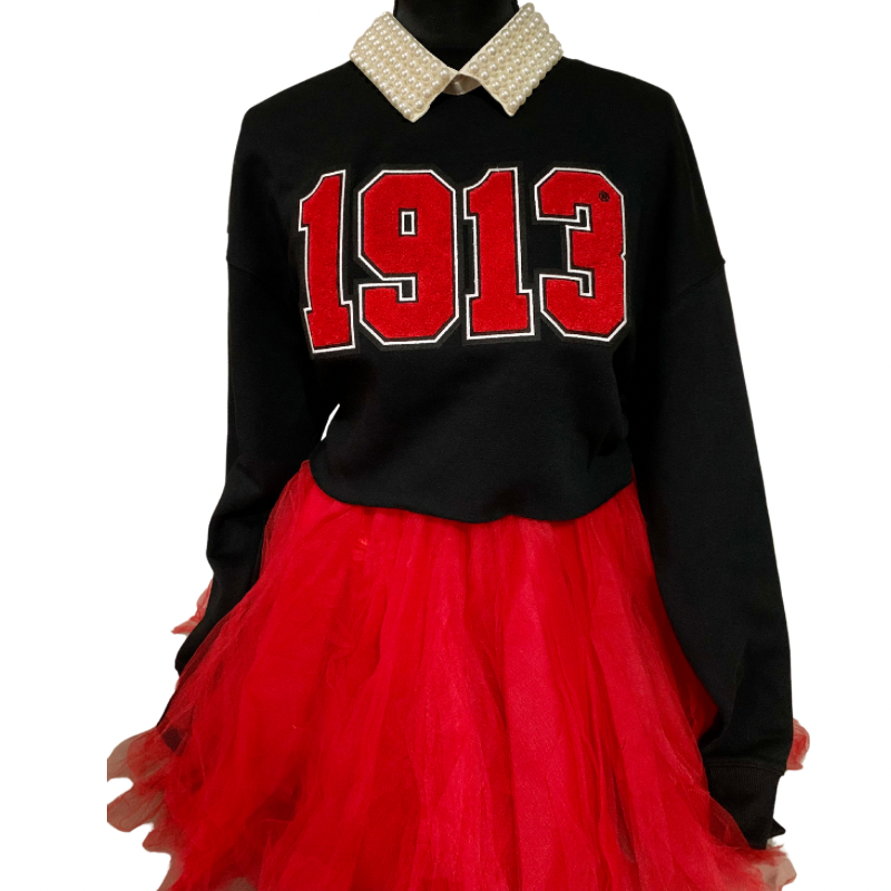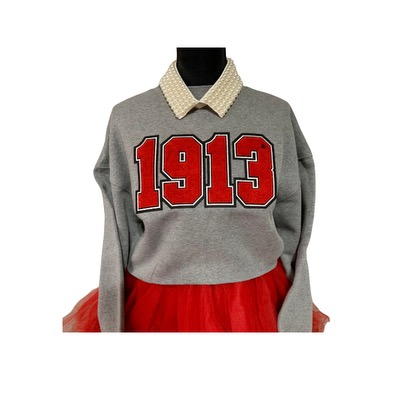 Oversized cropped sweatshirt with 1913 chenille design. This is a customer’s favorite. So soft and comfy!