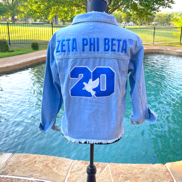 Custom embroidered 3/4 sleeve denim jacket. Fits true to size