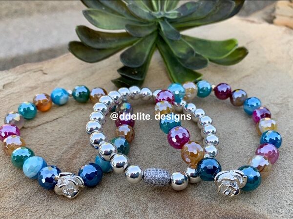 Our Rose collection focus is on the beautiful golden rose accent. It’s mixture of gold and bronze beads adds pizazz and is