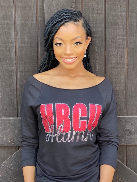Delta Sigma Theta black pearl sleeved tee with custom ΔΣΘ chenille lettering. Soft feminine cut with 5% stretch. Size up for a