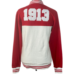 Drop sleeve light-weight sweatshirt with chenille patch design.